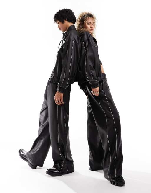 Black clearance pu jogger, COLLUSION Unisex jogger in black PU co ord ASOS clearance