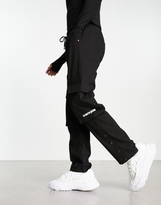Black clearance snap pants, Sixth June snap cargo pants in black ASOS clearance