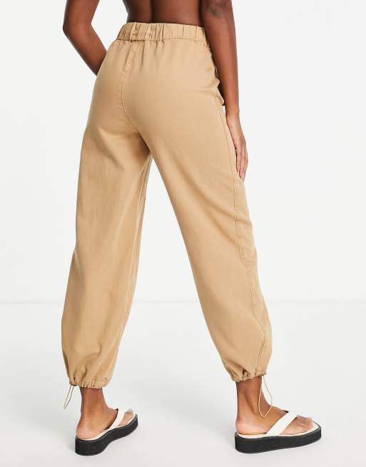 Topshop highwaisted soft cotton drawstring cuffed trouser in tan