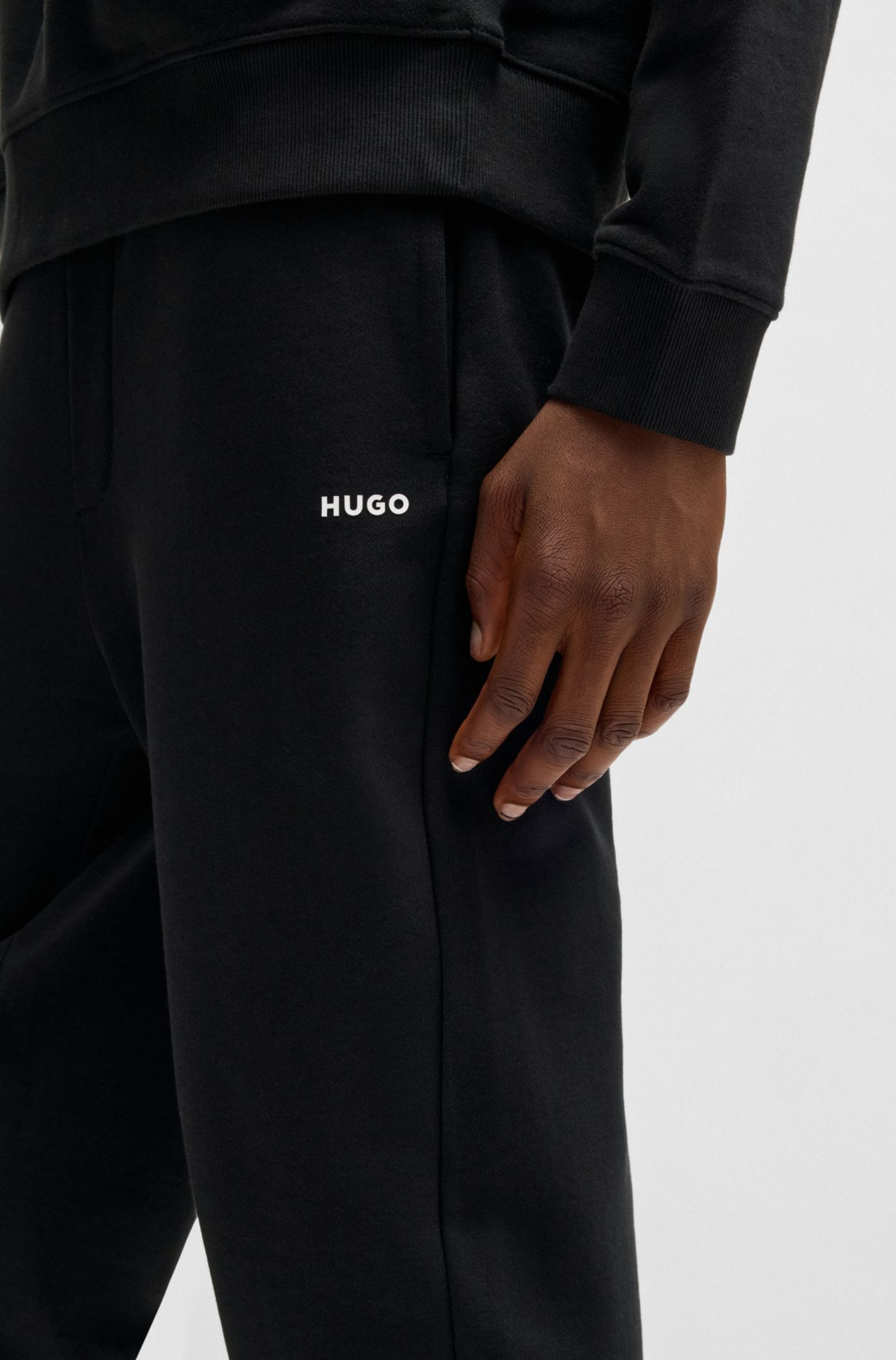HUGO Cotton terry tracksuit bottoms with logo print