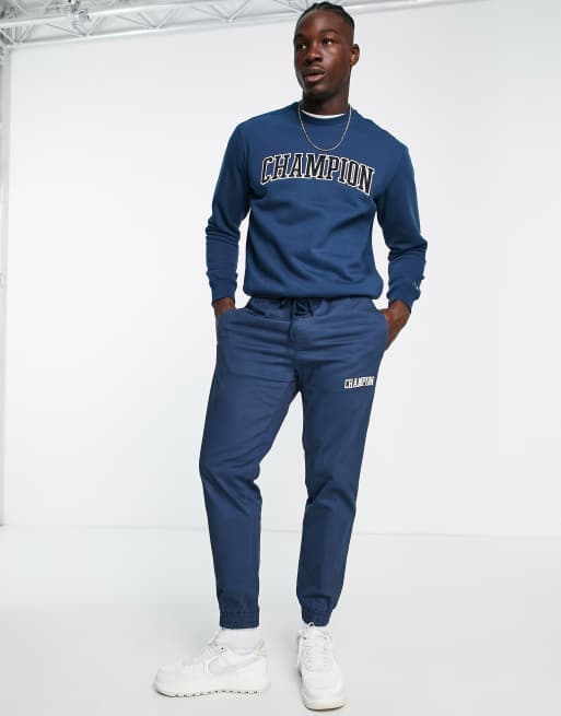 Champion varsity logo joggers in blue ASOS