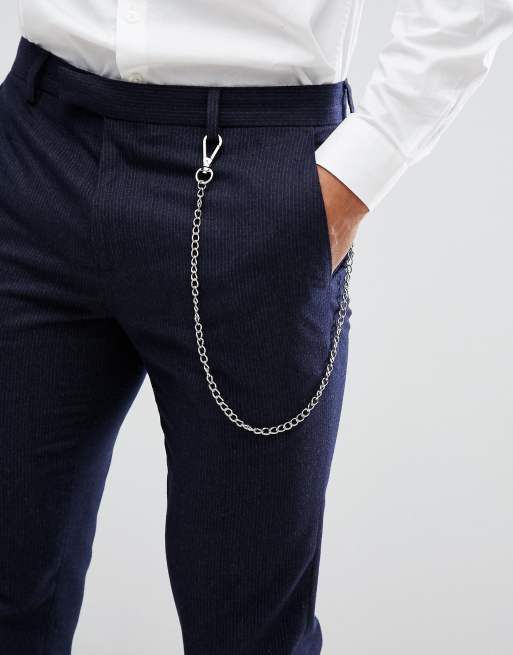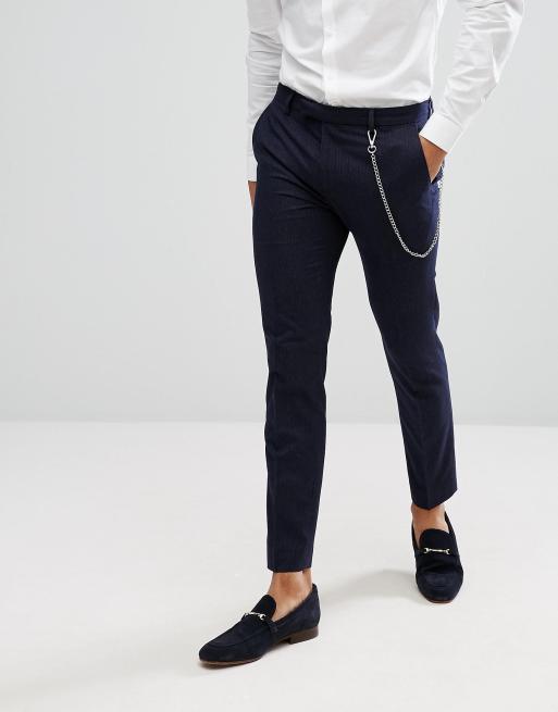 River Island Suit Trousers With Chain Detail In Navy Pinstripe