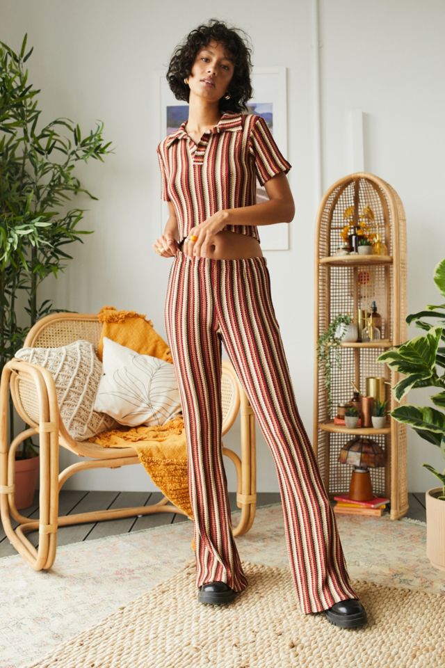 Urban outfitters striped clearance trousers, Urban Outfitters Archive Tan Knit Stripe Flare Trousers clearance