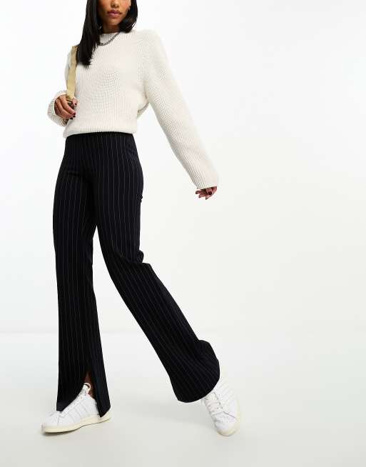 Mango clearance pinstripe trousers, Mango slim fit flared pinstripe trousers in black clearance