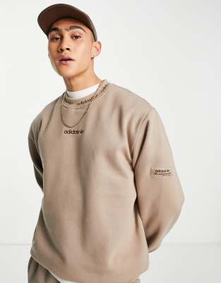 Adidas originals linear clearance fleece crew sweatshirt, adidas Originals Trefoil Linear premium sweatshirt in chalky clearance