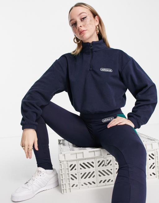 adidas Originals Retro Luxury 1 4 zip cropped fleece with back