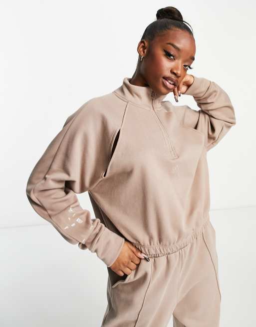adidas Training Hyperglam cropped 1 2 zip fleece in brown