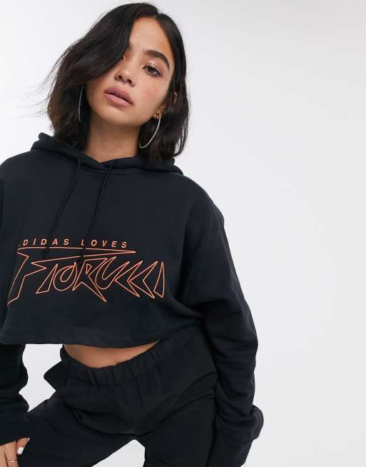 adidas Originals x Fiorucci cropped hoodie in black and red
