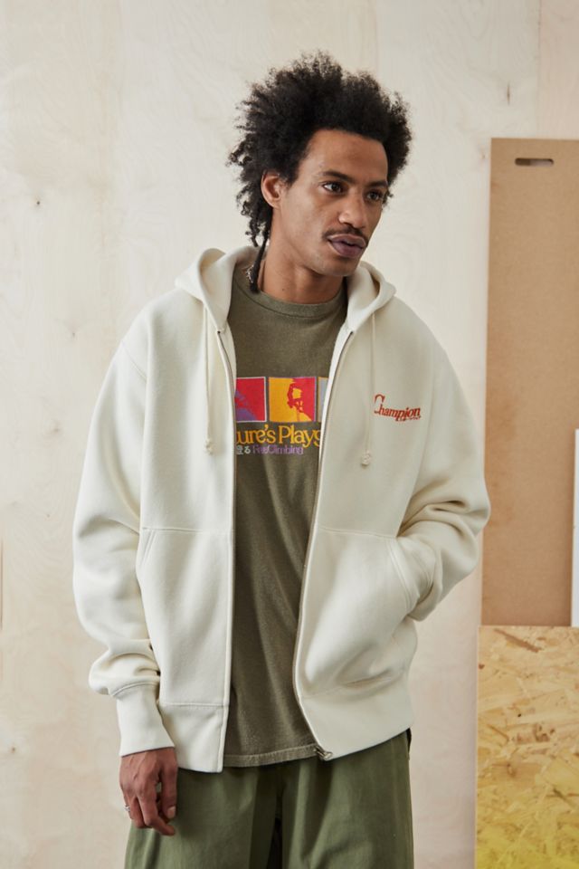 Champion UO Exclusive Reverse Weave Orange Embroidered Zip Up Hoodie
