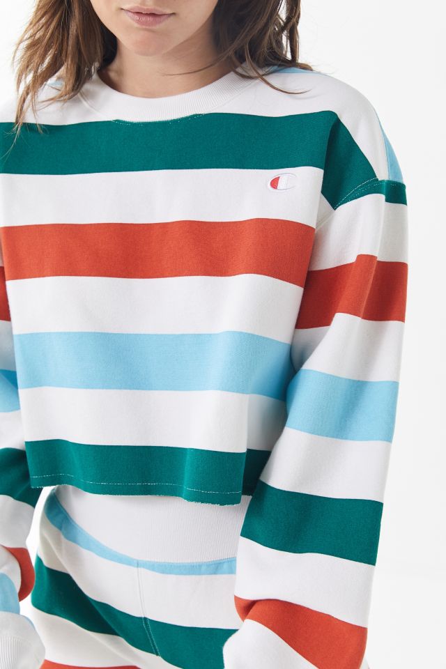 Champion stripe cropped clearance sweatshirt, Champion Sweatshirt Graphic Stripe And Colour Block Cropped 112761 clearance