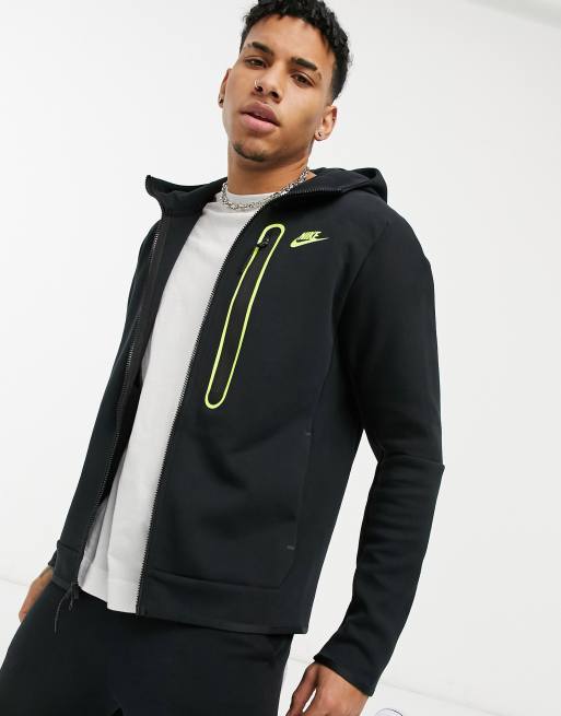 Nike Tech Fleece zip through hoodie in black volt