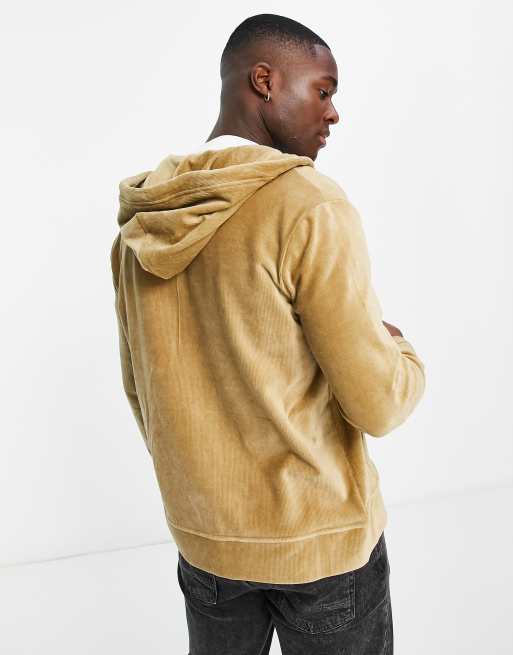 Polo Ralph Lauren icon logo cord sweat full zip hoodie in khaki tan