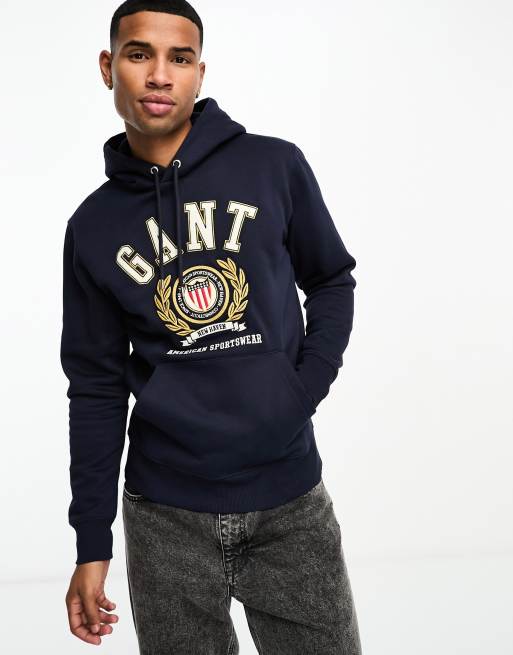 GANT crest logo embroidery relaxed fit hoodie in navy ASOS