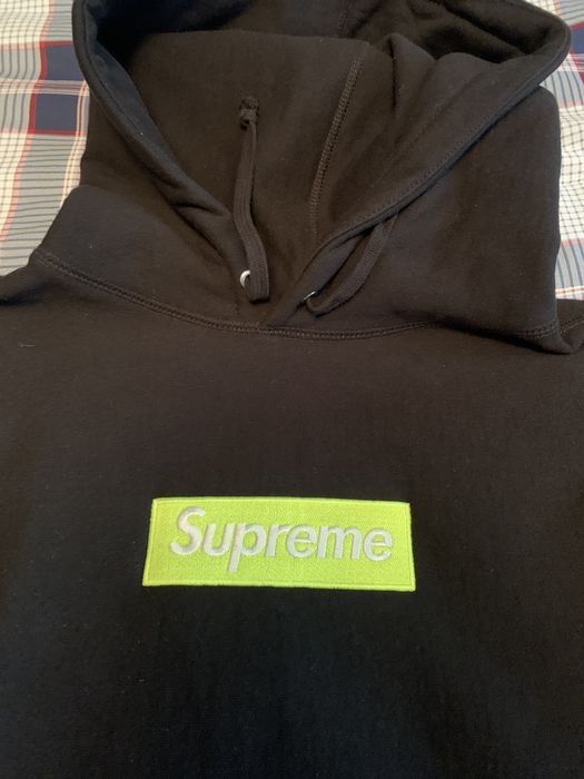 Perfect Condition Supreme Box Logo Hoodie Bogo Black w Lime Green Logo Large