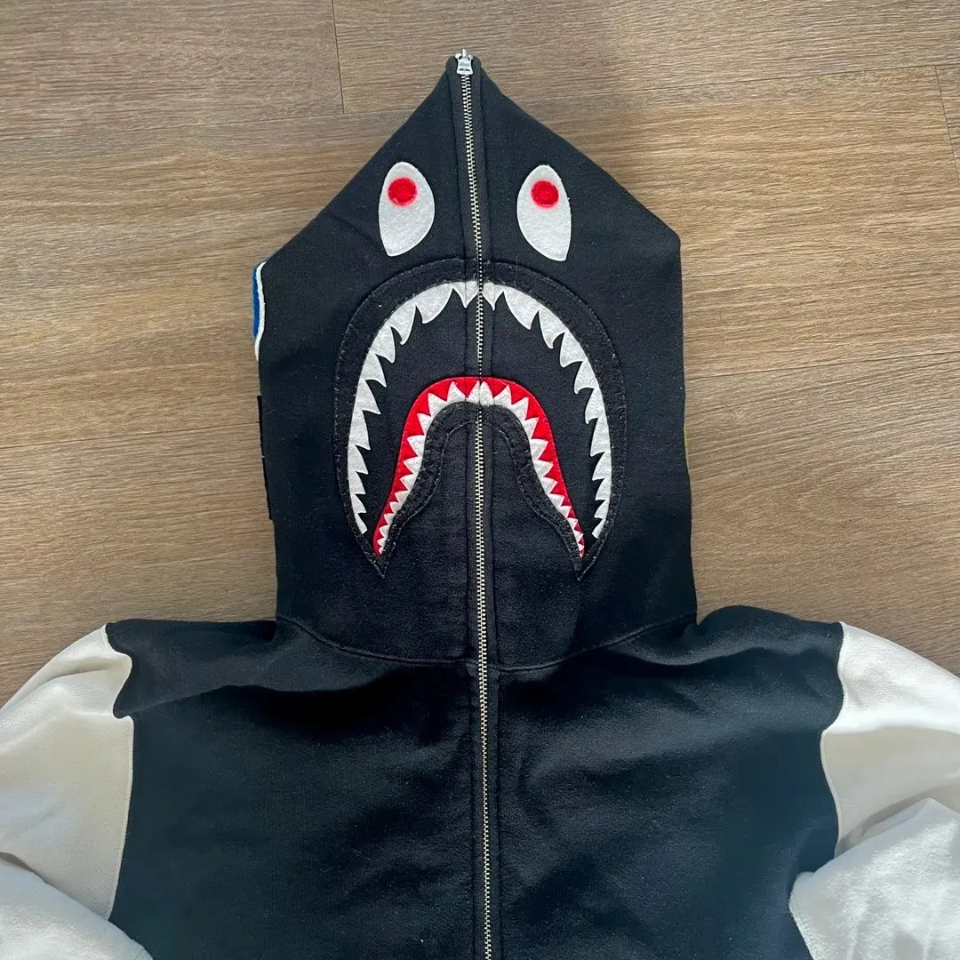 BAPE Shark zip hoodie varsity jacket text color camo Black A Bathing Ape Size M