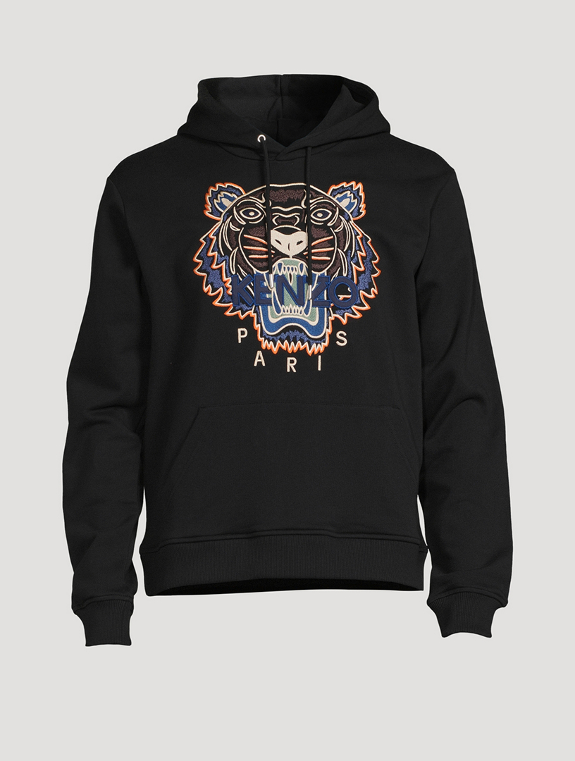 KENZO TIGER EMBROIDERED HOODIE SWEATSHIRT BLACK NEW