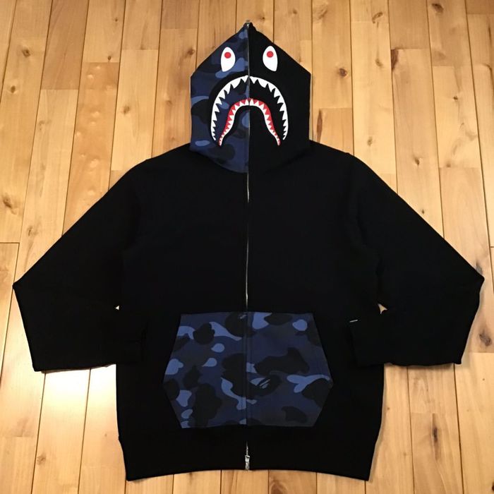 Bape BAPE blue camo x black shark full zip hoodie a bathing ape