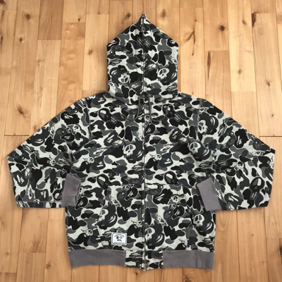 Bape x stussy clearance camo hoodie, Pre owned Bape Stussy Full Zip Hoodie Skull Bape Camo A Bathing Ape In Black Camo clearance