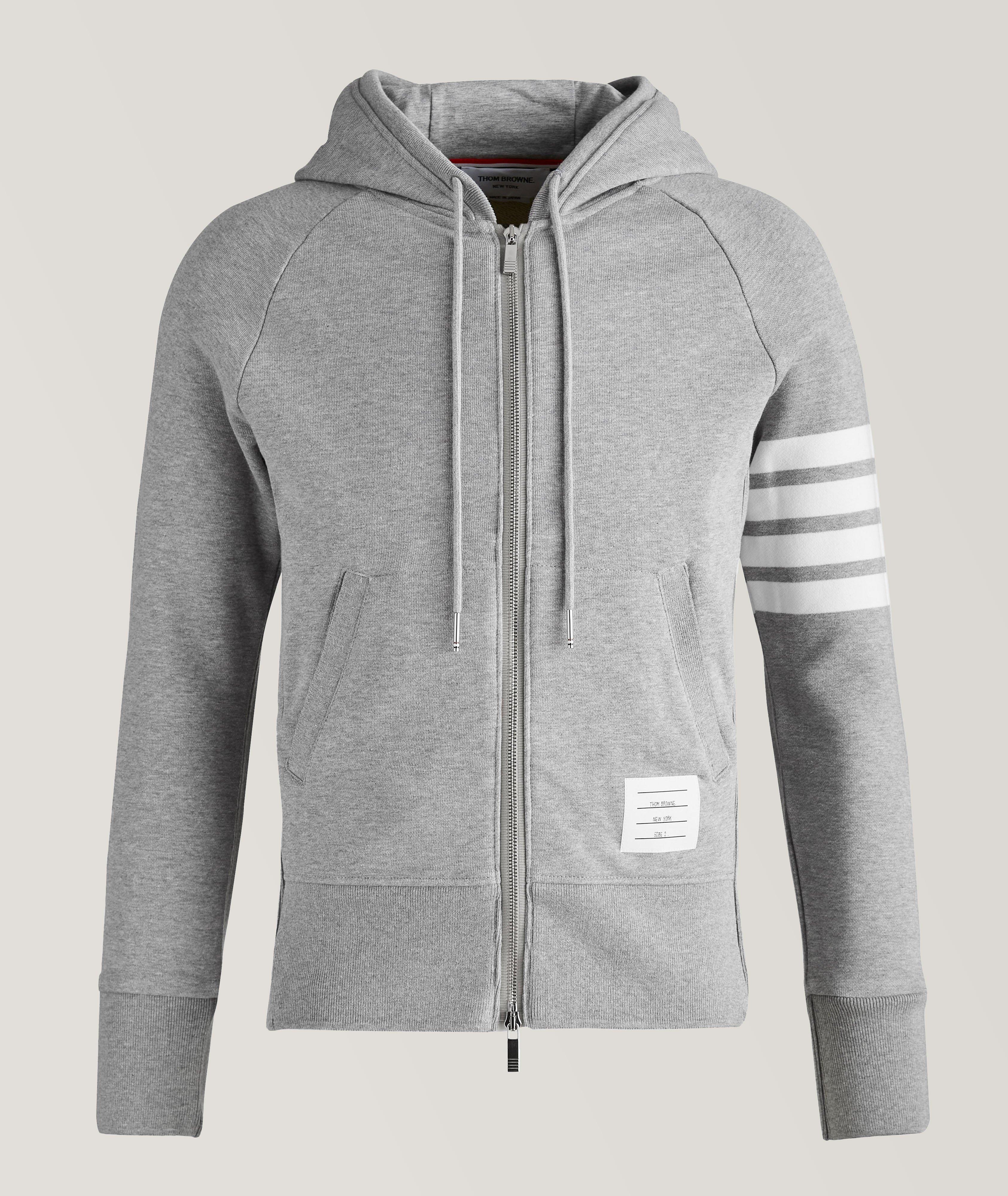 Thom Browne Four Bar Stripe Zip Up Cotton Hooded Sweater