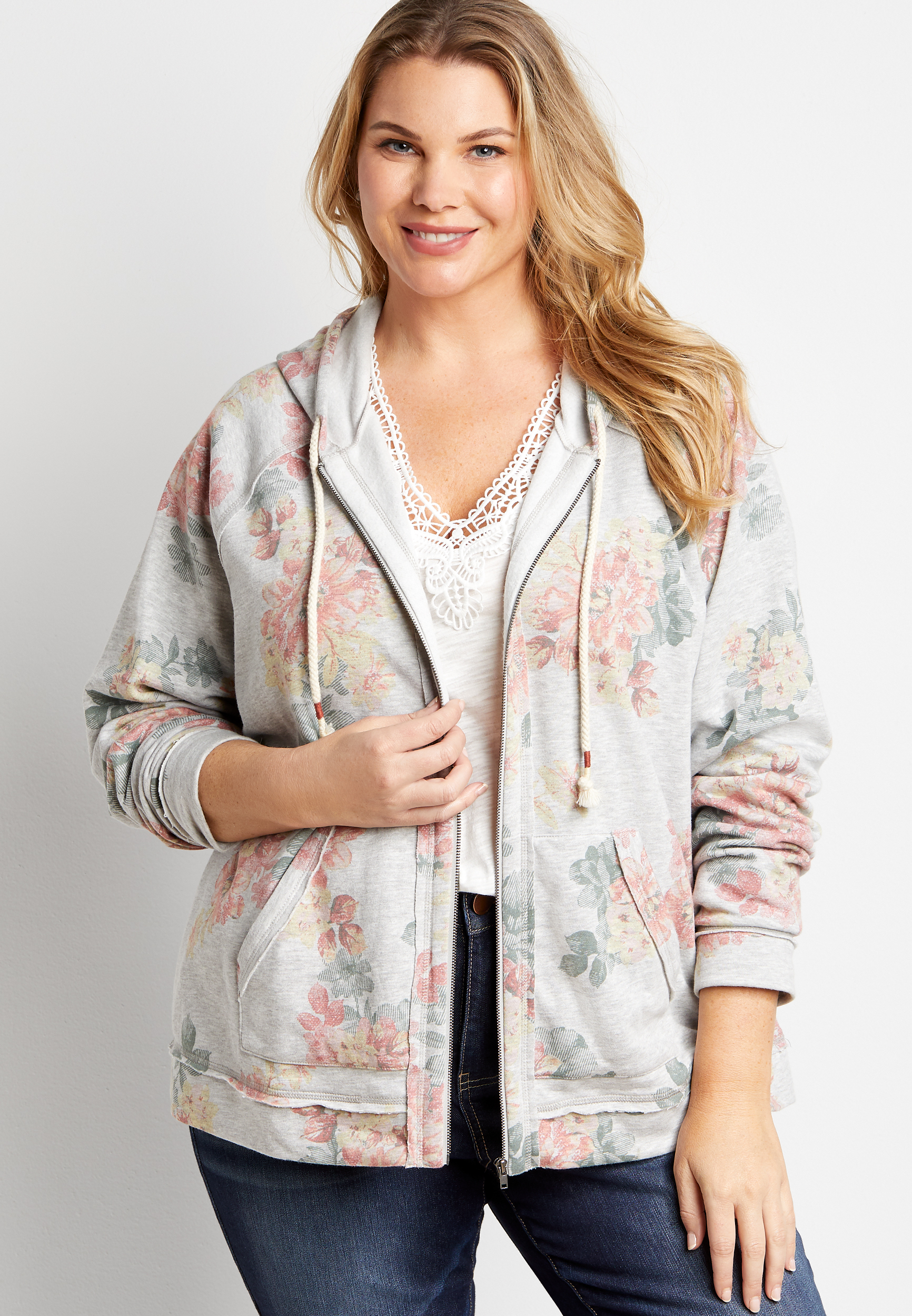 Floral zip up clearance hoodie, Plus Size Floral Zip Up Hoodie clearance