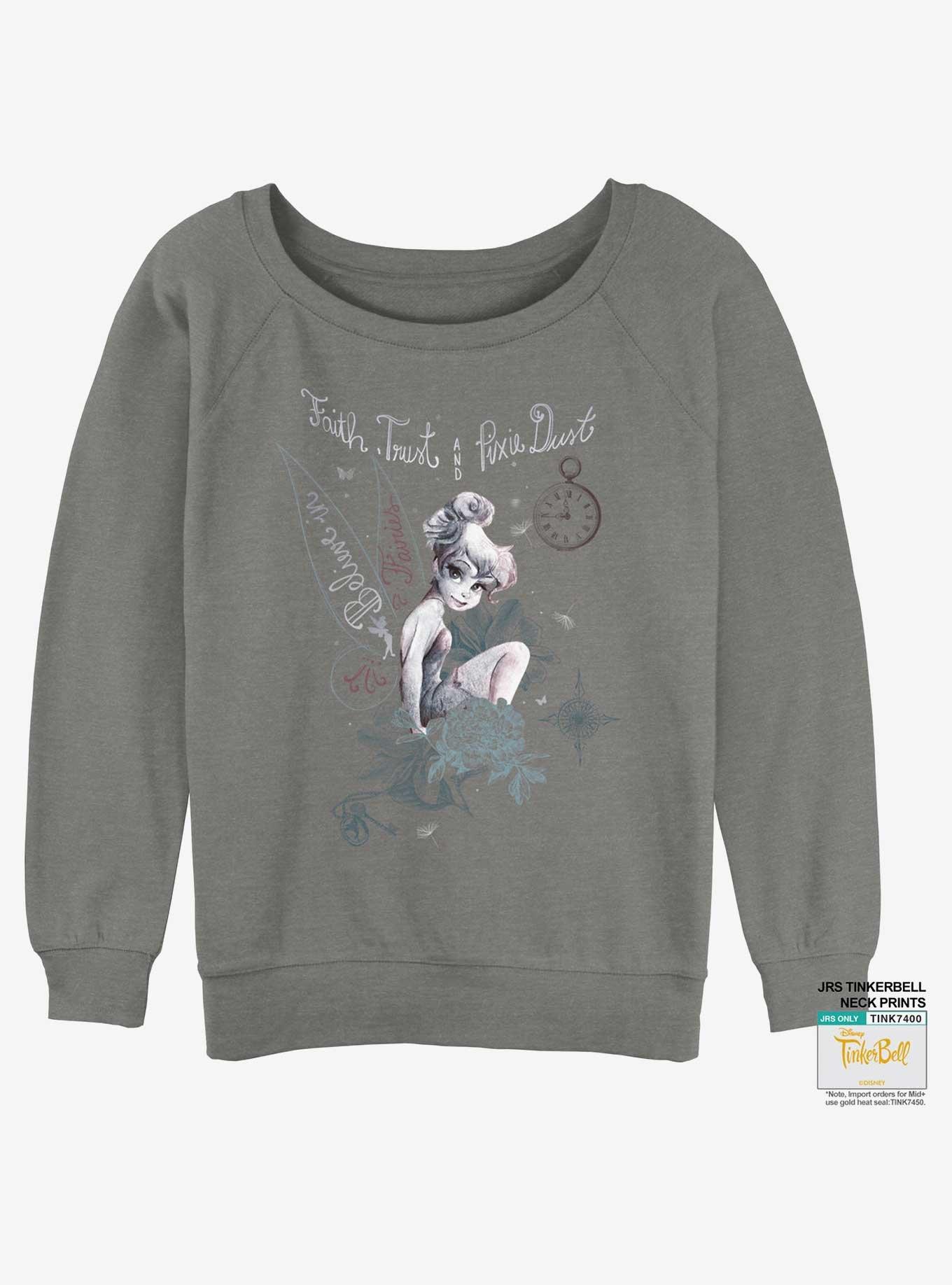 Disney Tinker Bell Pixie Dust Womens Slouchy Sweatshirt GREY