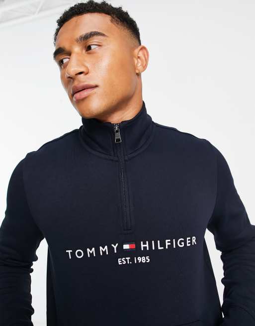 Tommy Hilfiger Sweatshirt met geborduurd logo en korte rits in