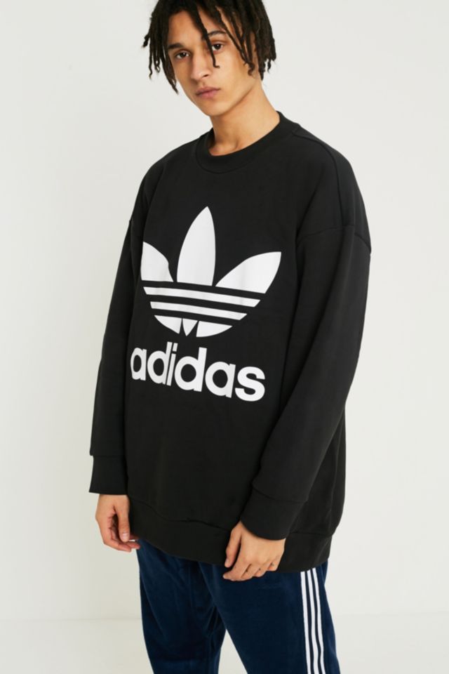 adidas Trefoil Logo Black Oversized Crew Neck Sweatshirt