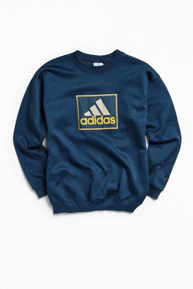 Adidas originals crew neck clearance sweatshirt with box logo, Vintage adidas Dark Blue Box Logo Crew Neck Sweatshirt clearance