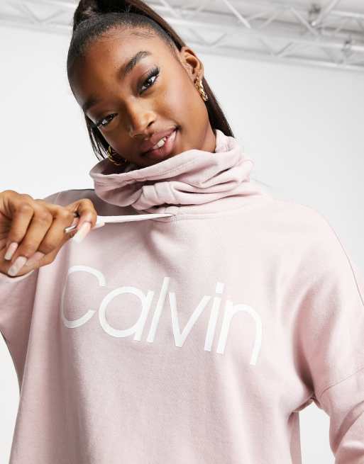 Calvin Klein Performance logo tape crop pullover in pink ASOS