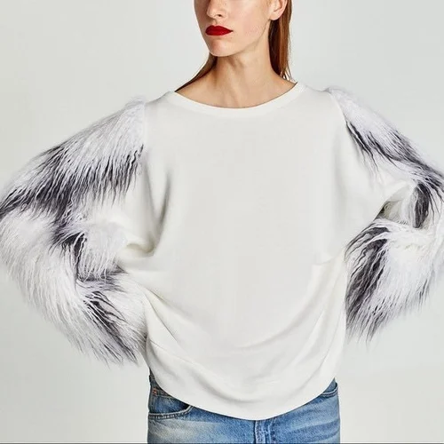 Zara faux fur clearance sweatshirt, Zara Sweater with Faur Fur Sleeves UFO No More clearance