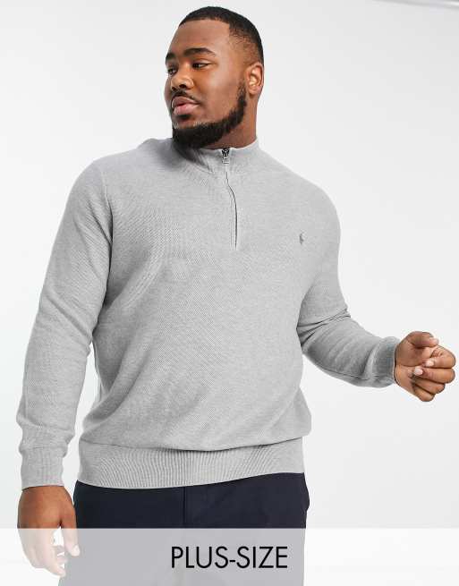Grey clearance ralph jumper, Polo Ralph Lauren Big Tall pima cotton knit half zip jumper in clearance