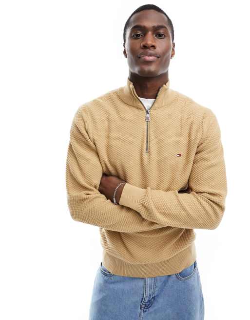 Tommy Hilfiger oval structure zip mock jumper in khaki green ASOS