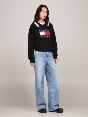 Flag Badge Boxy Cropped Jumper Black Tommy Hilfiger