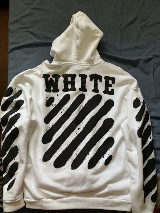 Off white spray clearance paint hoodie, Off White White Diagonal Spray Hoodie 545 SSENSE Lookastic clearance