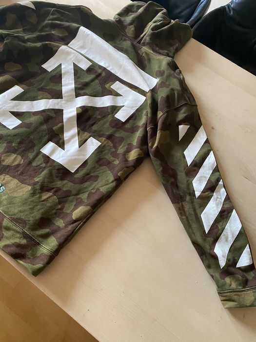 Off White Mens Camouflage Seeing Things Logo Hoodie Long Sleeve