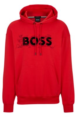 BOSS Interlock cotton regular fit hoodie with special artwork