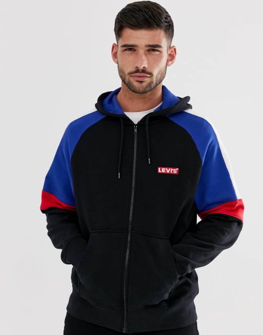 Levi s small batwing logo cut sew color block full zip hoodie in black blue red