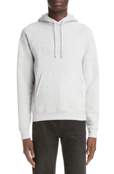 Saint Laurent Embroidered logo Cotton Hoodie In Grey ModeSens