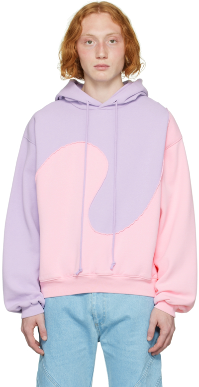 Erl Wave Colour block Panelled Hoodie In Pink Purple ModeSens
