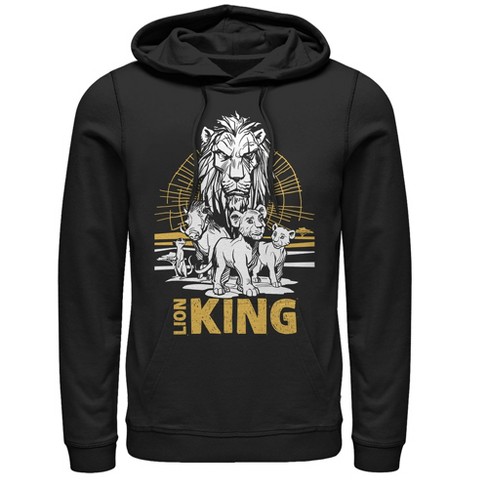 Men s Lion King Savannah Sunset Crew Pull Over Hoodie Black X Large