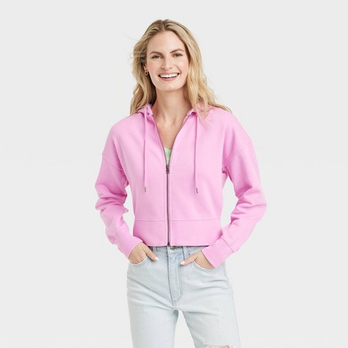 Women s Cropped Hooded Zip Up Sweatshirt Universal Thread Pink S