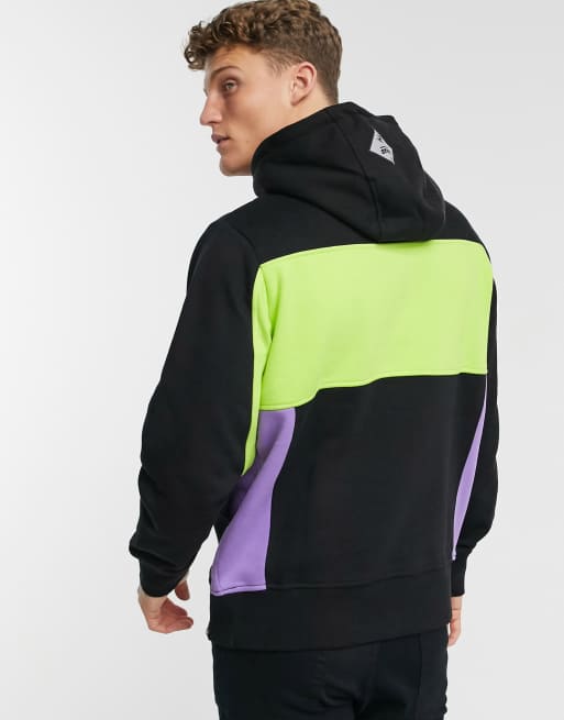 Pull Bear hoodie with contrast lime panel in black
