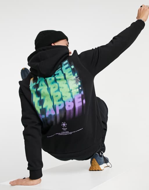 Bershka hoodie with neon back print in black
