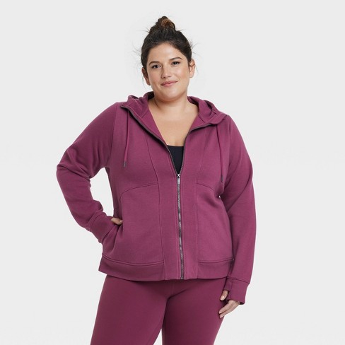 Women s Full Zip Fleece Hoodie All in Motion Burgundy 3X