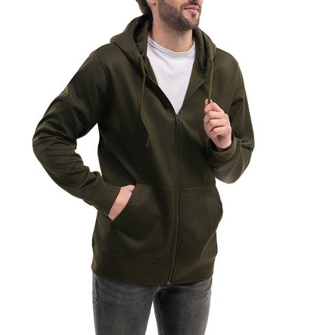 Mio Marino Premium Zip Up Hoodie for Men with Smooth Silky Matte Finish Cozy Fleece Inner Lining Men s Sweater with Hood Army Green Size Large