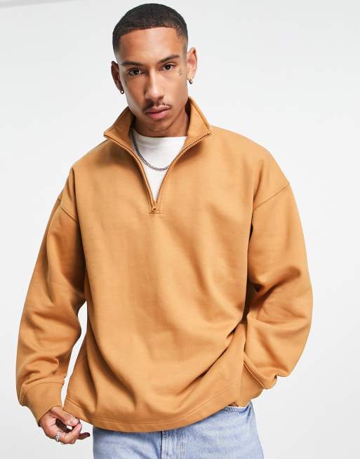 Topman heavyweight oversized 1 4 zip sweatshirt in brown
