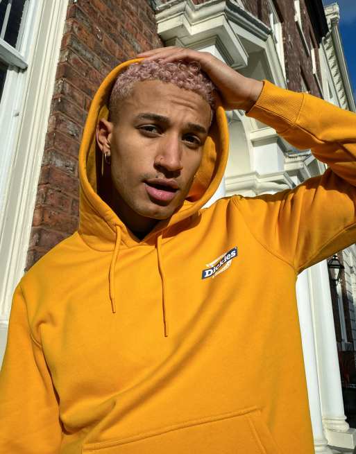 Brand New DICKIES Women M Hoodie Yellow Jumper Icon Logo Big Pullover Sweatshirt