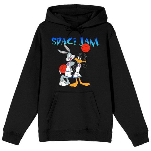 Space Jam 1996 Bugs Daffy Gradient Logo Long Sleeve Black Hooded Sweatshirt XXL