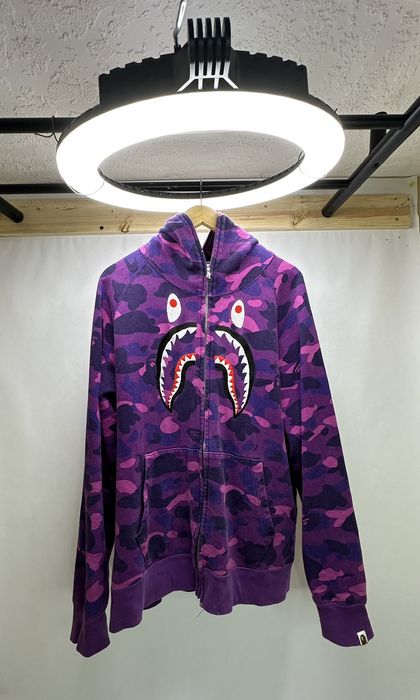 BAPE Purple camo shark zip hoodie jacket A Bathing Ape Size M
