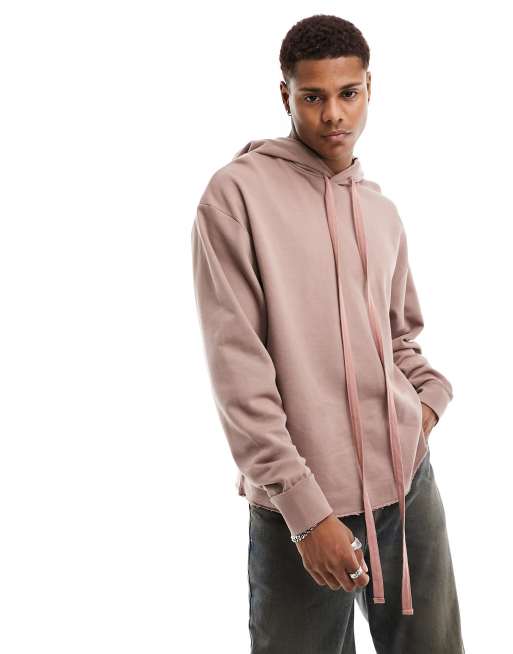 ASOS DESIGN oversized hoodie in brown with distressed seam details